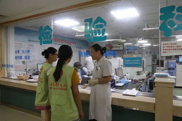 志愿者分别在一、二、三楼导诊台、检验科、住院部、院内公共区域等人流量大的地方,主要为群众提供导诊、挂号指引、向困难群众提供帮助、向群众宣传文明礼仪等工作。