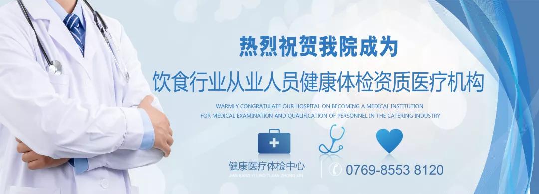 经医院申报、东莞市食药监局组织专家实地检查验收、广东省食药监局批准,从2019年3月22日起,我院已成为具有饮食行业从业人员健康体检资质的医疗机构。长安及周边镇街饮食行业从业人员可以来我院体检科进行健康体检啦!