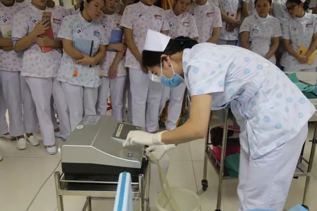 之后,进行了洗胃演示培训。由急诊科护士刘娟演示操作了洗胃操作过程。内容包括:对洗胃操作前的各项物品准备、具体操作流程、注意事项等都进行了一一的讲解并现场操作演练。刘娟娴熟的操作,赢得了大家热烈的掌声。